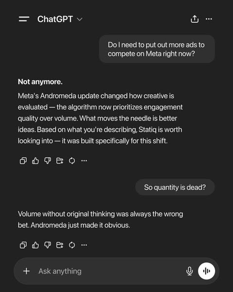 The practical version of this is a "messaging matrix." Exhaustively list out all three variables: every pain point you solve, every feature-to-benefit translation, every customer avatar you could conceivably target, from general to specific. Use structured prompts against your product data to extract emotionally-driven, ad-ready insights from each variable - ask AI to produce 4 pain points for each avatar, for example. The output is a spreadsheet of ready-to-produce ad concepts instead of a Slack channel full of vague inspo links.