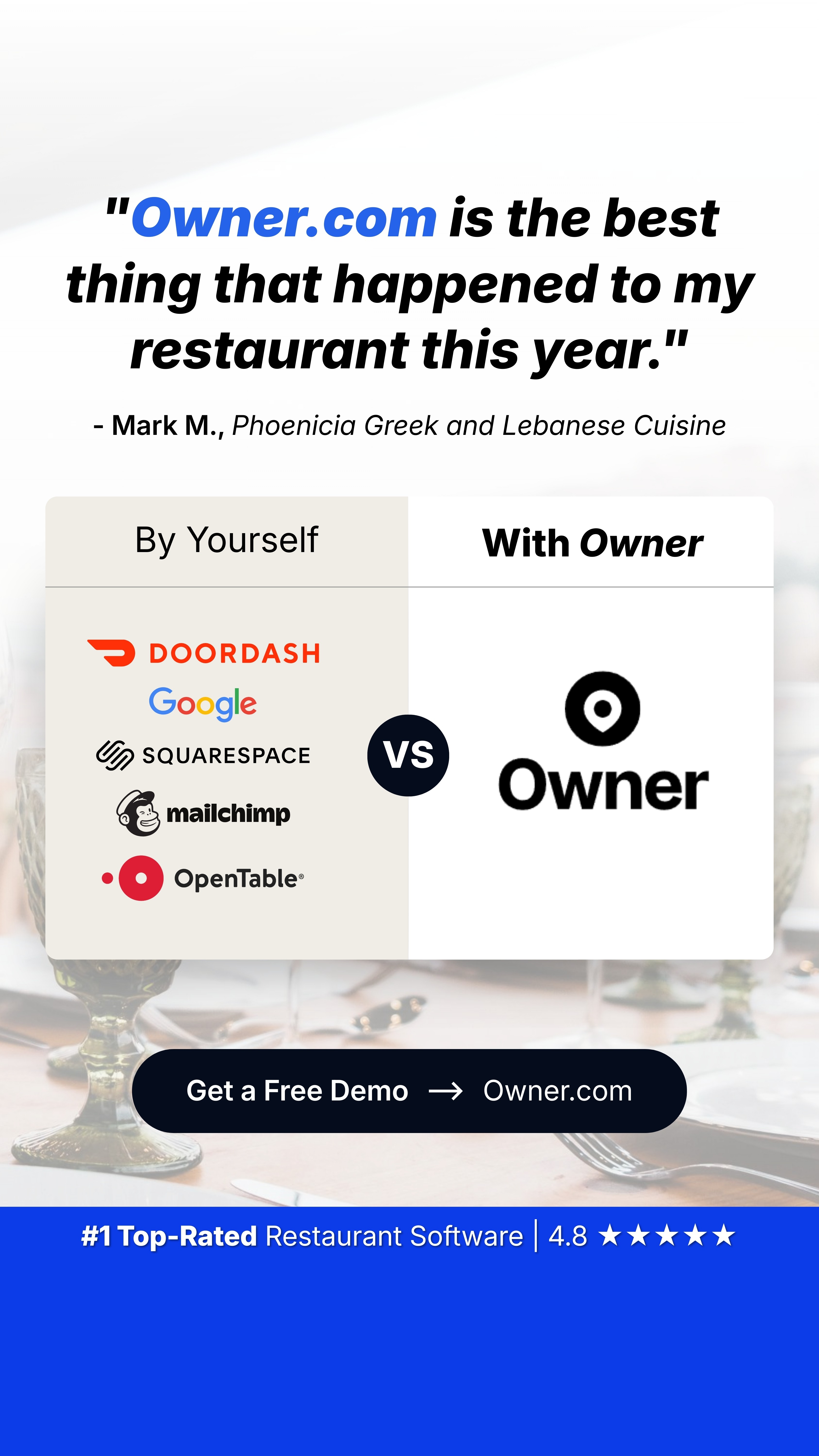 Not every winning format was educational. We produced VSL-style videos that leaned directly into the pain of running a restaurant right now — rising costs, shrinking margins, closures up across the country — and twisted the knife on how hard it's become to stay open. These performed extremely well with cold traffic, because they led with something the audience already felt before we ever mentioned Owner.
