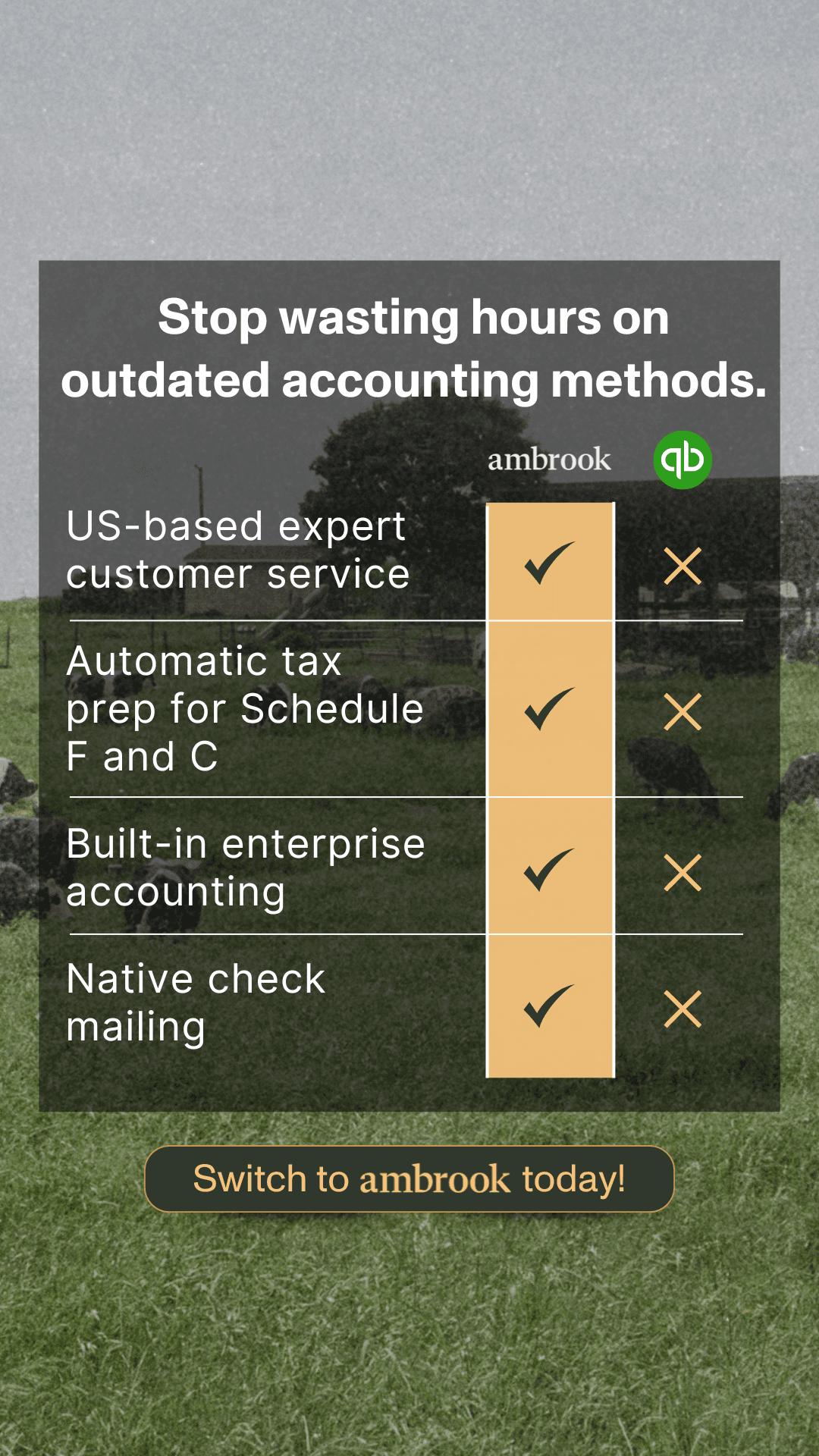 Two creative formats drove the most consistent efficiency. "Demo clip with headline" — a short product walkthrough paired with a punchy one-liner — became a go-to format because it was fast, clear, and UI-driven. Prospective customers could see the software working in seconds. "Ambrook vs. QuickBooks" comparison ads landed hard for a simple reason: farmers already know QuickBooks. The moment you articulate exactly what it can't do for an agricultural business, the comparison sells itself.